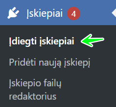 1. Valdymo skydelyje eikite į „Įskiepiai“ > „Įdiegti įskiepiai“.