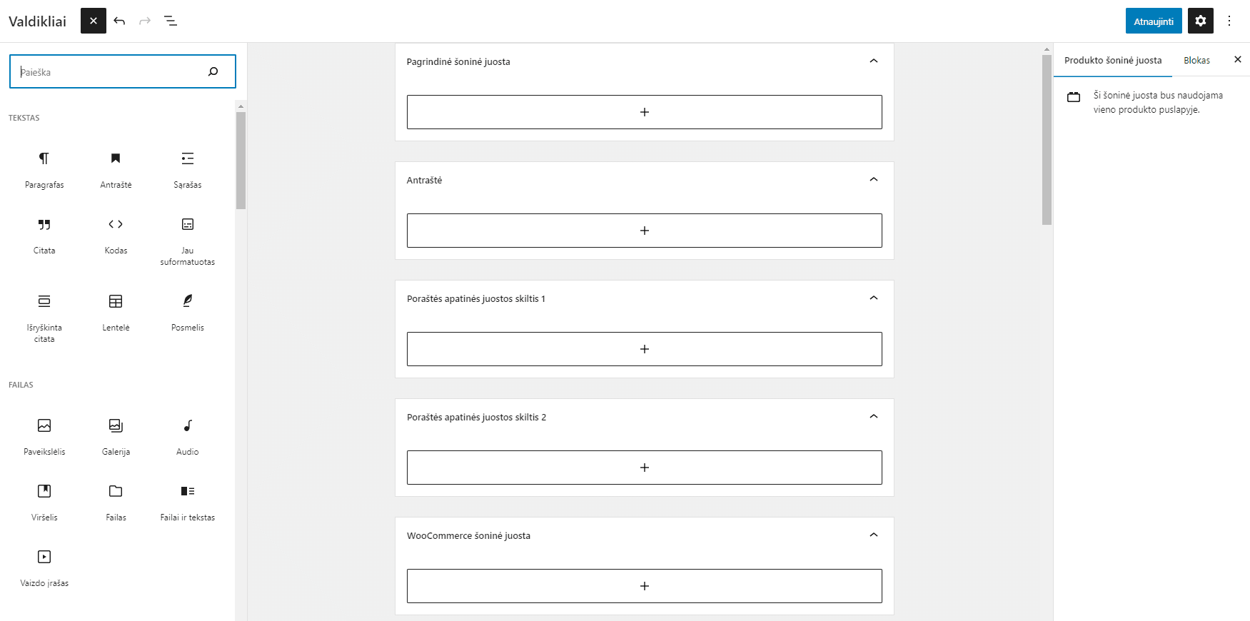Taip galite lanksčiai ir patogiai valdyti savo svetainės šoninių juostų, poraščių ir kitų sričių turinį, pritaikydami jį pagal savo poreikius.
