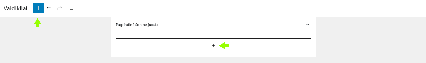 - Spustelėkite pliuso piktogramą (+) („Pridėti bloką“), esančią tos srities viduje arba viršutiniame kairiajame kampe.